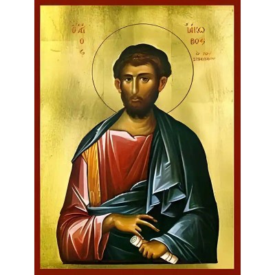 Κριτικάρετε το(τα): Εικόνα Ορθοδοξίας με περίγραμμα χρυσό σε ξύλο Φλαμουρίας με βάση Εικόνα ΑΓΙΟΣ ΑΠΟΣΤΟΛΟΣ ΙΑΚΩΒΟΣ, Ο ΖΕΒΕΔΑΙΟΥ Χειροποίητη Ελληνορθόδοξη εικόνα του Ιησού Χριστού, Κρεμαστή πλάκα βυζαντινής τέχνης, χριστιανική τέχνη Διάσταση 40x30 cm (10,2x7,9 ίντσες) INT