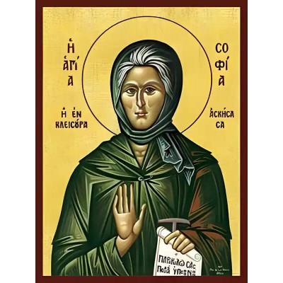 Κριτικάρετε το(τα): Εικόνα Ορθοδοξίας με περίγραμμα χρυσό σε ξύλο Φλαμουρίας με βάση Εικόνα ΑΓΙΑ ΣΟΦΙΑ, Η ΕΝ ΚΛΕΙΣΟΥΡΑ ΑΣΚΗΣΑΣΑ Χειροποίητη Ελληνορθόδοξη εικόνα του Ιησού Χριστού, Κρεμαστή πλάκα βυζαντινής τέχνης, χριστιανική τέχνη Διάσταση 40x30 cm (10,2x7,9 ίντσες) INTR