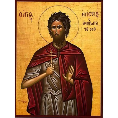Όνομα Προϊόντος Εικόνα Ορθοδοξίας με περίγραμμα χρυσό σε ξύλο Φλαμουρίας με βάση Εικόνα ΑΓΙΟΣ ΑΛΕΞΙΟΣ, Ο ΑΝΘΡΩΠΟΣ ΤΟΥ ΘΕΟΥ Χειροποίητη Ελληνορθόδοξη εικόνα του Ιησού Χριστού, Κρεμαστή πλάκα βυζαντινής τέχνης, χριστιανική τέχνη Διάσταση 40x30 cm (10,2x7,9 ίντσες) INTRA