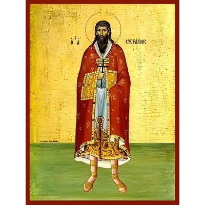 Εικόνα Ορθοδοξίας με περίγραμμα χρυσό σε ξύλο Φλαμουρίας με βάση Εικόνα ΑΓΙΟΣ ΕΥΣΤΡΑΤΙΟΣ, ΜΑΡΤΥΣ, ΟΛΟΣΩΜΟΣ Χειροποίητη Ελληνορθόδοξη εικόνα του Ιησού Χριστού, Κρεμαστή πλάκα βυζαντινής τέχνης, χριστιανική τέχνη Διάσταση 40x30 cm (10,2x7,9 ίντσες) INTRAEK-1447757864867