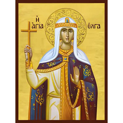 Όνομα Προϊόντος Εικόνα Ορθοδοξίας με περίγραμμα χρυσό σε ξύλο Φλαμουρίας με βάση Εικόνα ΑΓΙΑ ΟΛΓΑ, ΠΡΙΓΚΙΠΙΣΣΑ ΤΗΣ ΡΩΣΙΑΣ Χειροποίητη Ελληνορθόδοξη εικόνα του Ιησού Χριστού, Κρεμαστή πλάκα βυζαντινής τέχνης, χριστιανική τέχνη Διάσταση 40x30 cm (10,2x7,9 ίντσες) INTRAE