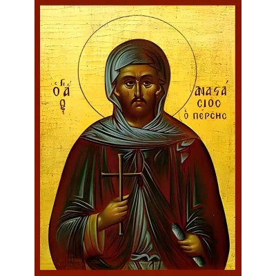 Εικόνα Ορθοδοξίας με περίγραμμα χρυσό σε ξύλο Φλαμουρίας με βάση Εικόνα ΑΓΙΟΣ ΑΝΑΣΤΑΣΙΟΣ ΜΑΡΤΥΣ, Ο ΠΕΡΣΗΣ Χειροποίητη Ελληνορθόδοξη εικόνα του Ιησού Χριστού, Κρεμαστή πλάκα βυζαντινής τέχνης, χριστιανική τέχνη Διάσταση 40x30 cm (10,2x7,9 ίντσες) INTRAEK-1447757865101