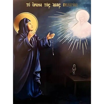 Κριτικάρετε το(τα): Εικόνα Ορθοδοξίας με περίγραμμα χρυσό σε ξύλο Φλαμουρίας με βάση Εικόνα ΑΓΙΑ ΠΕΛΑΓΙΑ Η ΤΗΝΙΑ, ΤΟ ΟΡΑΜΑ Χειροποίητη Ελληνορθόδοξη εικόνα του Ιησού Χριστού, Κρεμαστή πλάκα βυζαντινής τέχνης, χριστιανική τέχνη Διάσταση 40x30 cm (10,2x7,9 ίντσες) INTRAEK-1