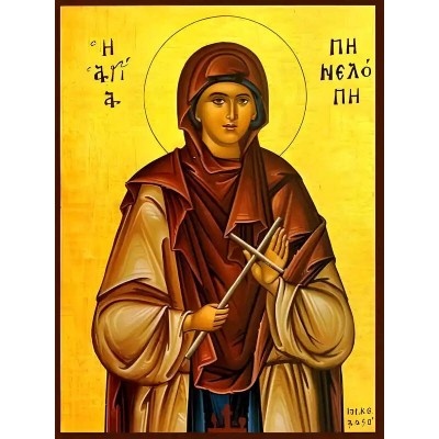 Εικόνα Ορθοδοξίας με περίγραμμα χρυσό σε ξύλο Φλαμουρίας με βάση Εικόνα ΑΓΙΑ ΠΗΝΕΛΟΠΗ, ΜΑΡΤΥΣ Χειροποίητη Ελληνορθόδοξη εικόνα του Ιησού Χριστού, Κρεμαστή πλάκα βυζαντινής τέχνης, χριστιανική τέχνη Διάσταση 40x30 cm (10,2x7,9 ίντσες) INTRAEK-1447757865240