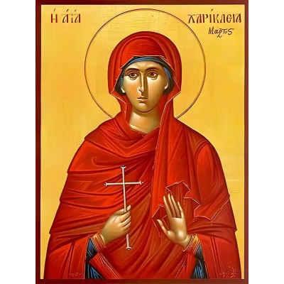 Όνομα Προϊόντος Εικόνα Ορθοδοξίας με περίγραμμα χρυσό σε ξύλο Φλαμουρίας με βάση Εικόνα ΑΓΙΑ ΧΑΡΙΚΛΕΙΑ, ΠΑΡΘΕΝΟΜΑΡΤΥΣ Χειροποίητη Ελληνορθόδοξη εικόνα του Ιησού Χριστού, Κρεμαστή πλάκα βυζαντινής τέχνης, χριστιανική τέχνη Διάσταση 40x30 cm (10,2x7,9 ίντσες) INTRAEK-14