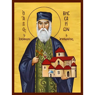 Όνομα Προϊόντος Εικόνα Ορθοδοξίας με περίγραμμα χρυσό σε ξύλο Φλαμουρίας με βάση Εικόνα ΑΓΙΟΣ ΒΗΣΣΑΡΙΩΝ Ο ΑΓΑΘΩΝΙΤΗΣ Χειροποίητη Ελληνορθόδοξη εικόνα του Ιησού Χριστού, Κρεμαστή πλάκα βυζαντινής τέχνης, χριστιανική τέχνη Διάσταση 40x30 cm (10,2x7,9 ίντσες) INTRAEK-144