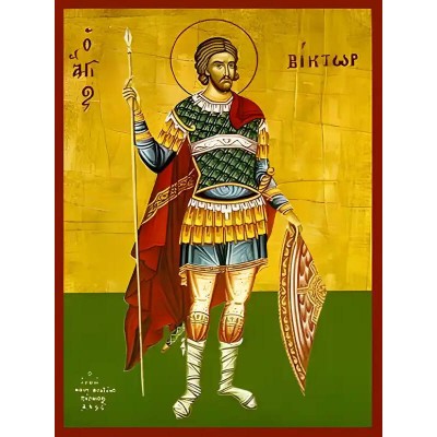 Όνομα Προϊόντος Εικόνα Ορθοδοξίας με περίγραμμα χρυσό σε ξύλο Φλαμουρίας με βάση Εικόνα ΑΓΙΟΣ ΒΙΚΤΩΡ ΔΑΜΑΣΚΟΥ, ΟΛΟΣΩΜΟΣ Χειροποίητη Ελληνορθόδοξη εικόνα του Ιησού Χριστού, Κρεμαστή πλάκα βυζαντινής τέχνης, χριστιανική τέχνη Διάσταση 40x30 cm (10,2x7,9 ίντσες) INTRAEK-