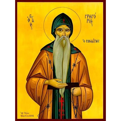 Όνομα Προϊόντος Εικόνα Ορθοδοξίας με περίγραμμα χρυσό σε ξύλο Φλαμουρίας με βάση Εικόνα ΑΓΙΟΣ ΓΡΗΓΟΡΙΟΣ ΣΙΝΑΪΤΗΣ Χειροποίητη Ελληνορθόδοξη εικόνα του Ιησού Χριστού, Κρεμαστή πλάκα βυζαντινής τέχνης, χριστιανική τέχνη Διάσταση 40x30 cm (10,2x7,9 ίντσες) INTRAEK-1447757