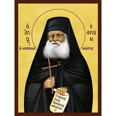 Όνομα Προϊόντος Εικόνα Ορθοδοξίας με περίγραμμα χρυσό σε ξύλο Φλαμουρίας με βάση Εικόνα ΑΓΙΟΣ ΕΦΡΑΙΜ, ΚΑΤΟΥΝΑΚΙΩΤΗΣ Χειροποίητη Ελληνορθόδοξη εικόνα του Ιησού Χριστού, Κρεμαστή πλάκα βυζαντινής τέχνης, χριστιανική τέχνη Διάσταση 40x30 cm (10,2x7,9 ίντσες) INTRAEK-1447