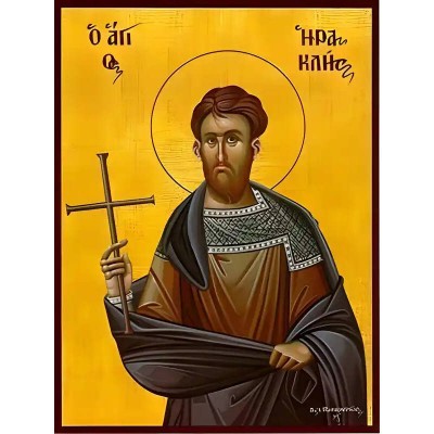 Κριτικάρετε το(τα): Εικόνα Ορθοδοξίας με περίγραμμα χρυσό σε ξύλο Φλαμουρίας με βάση Εικόνα ΑΓΙΟΣ ΗΡΑΚΛΗΣ ΚΑΡΘΑΓΕΝΗΣ, ΜΑΡΤΥΣ Χειροποίητη Ελληνορθόδοξη εικόνα του Ιησού Χριστού, Κρεμαστή πλάκα βυζαντινής τέχνης, χριστιανική τέχνη Διάσταση 40x30 cm (10,2x7,9 ίντσες) INTRAEK