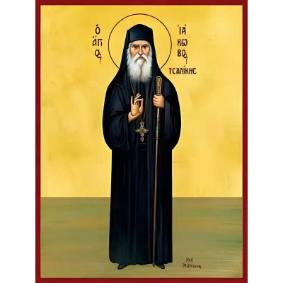 Εικόνα Ορθοδοξίας με περίγραμμα χρυσό σε ξύλο Φλαμουρίας με βάση Εικόνα ΑΓΙΟΣ ΙΑΚΩΒΟΣ ΤΣΑΛΙΚΗΣ, ΟΛΟΣΩΜΟΣ Χειροποίητη Ελληνορθόδοξη εικόνα του Ιησού Χριστού, Κρεμαστή πλάκα βυζαντινής τέχνης, χριστιανική τέχνη Διάσταση 40x30 cm (10,2x7,9 ίντσες) INTRAEK