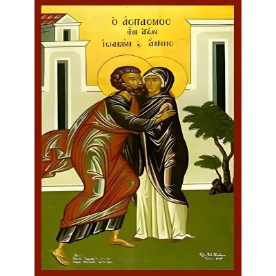 Κριτικάρετε το(τα): Εικόνα Ορθοδοξίας με περίγραμμα χρυσό σε ξύλο Φλαμουρίας με βάση Εικόνα ΑΓΙΟΙ ΙΩΑΚΕΙΜ ΚΑΙ ΑΝΝΑ, ΘΕΟΠΑΤΟΡΕΣ, Ο ΑΣΠΑΣΜΟΣ, ΟΛΟΣΩΜΟΙ Χειροποίητη Ελληνορθόδοξη εικόνα του Ιησού Χριστού, Κρεμαστή πλάκα βυζαντινής τέχνης, χριστιανική τέχνη Διάσταση 40x30 cm (1