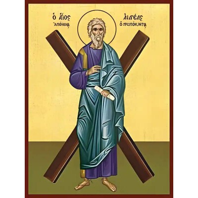 Κριτικάρετε το(τα): Εικόνα Ορθοδοξίας με περίγραμμα χρυσό σε ξύλο Φλαμουρίας με βάση Εικόνα ΑΓΙΟΣ ΑΠΟΣΤΟΛΟΣ ΑΝΔΡΕΑΣ, Ο ΠΡΩΤΟΚΛΗΤΟΣ, ΜΕ ΣΤΑΥΡΟ, ΟΛΟΣΩΜΟΣ Χειροποίητη Ελληνορθόδοξη εικόνα του Ιησού Χριστού, Κρεμαστή πλάκα βυζαντινής τέχνης, χριστιανική τέχνη Διάσταση 40x30 cm