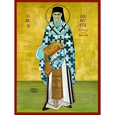 Εικόνα Ορθοδοξίας με περίγραμμα χρυσό σε ξύλο Φλαμουρίας με βάση Εικόνα ΑΓΙΟΣ ΔΙΟΝΥΣΙΟΣ Ο ΕΚ ΖΑΚΥΝΘΟΥ, ΕΠΙΣΚΟΠΟΣ ΑΙΓΙΝΗΣ, ΟΛΟΣΩΜΟΣ Χειροποίητη Ελληνορθόδοξη εικόνα του Ιησού Χριστού, Κρεμαστή πλάκα βυζαντινής τέχνης, χριστιανική τέχνη Διάσταση 40x30 cm