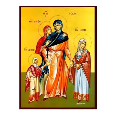 | Όνομα Προϊόντος | Εικόνα Ορθοδοξίας με περίγραμμα χρυσό σε ξύλο Φλαμουρίας με βάση Εικόνα Αγίες Σοφία και Θυγατέρες, Πίστις, Ελπίς και Αγάπη Χειροποίητη Ελληνορθόδοξη , Κρεμαστή πλάκα βυζαντινής τέχνης, χριστιανική τέχνη Διάσταση 45x35 cm (17,7 x 13,8 ίντσες) INTRAEK-629 |