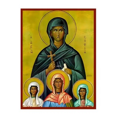 | Όνομα Προϊόντος | Εικόνα Ορθοδοξίας με περίγραμμα χρυσό σε ξύλο Φλαμουρίας με βάση Εικόνα Αγίες Σοφία και Θυγατέρες, Πίστις, Ελπίς και Αγάπη Χειροποίητη Ελληνορθόδοξη , Κρεμαστή πλάκα βυζαντινής τέχνης, χριστιανική τέχνη Διάσταση 45x35 cm (17,7 x 13,8 ίντσες) INTRAEK-629 |
