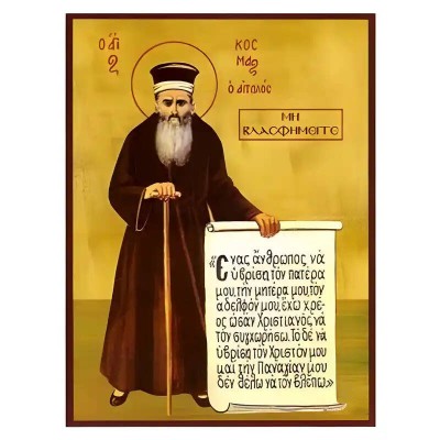 | Όνομα Προϊόντος | Εικόνα Ορθοδοξίας με περίγραμμα χρυσό σε ξύλο Φλαμουρίας με βάση Εικόνα Άγιος Κοσμάς Αιτωλός, "Μη βλασφημείτε" Χειροποίητη Ελληνορθόδοξη , Κρεμαστή πλάκα βυζαντινής τέχνης, χριστιανική τέχνη Διάσταση 45x35 cm (17,7 x 13,8 ίντσες) INTRAEK-6294670389 |