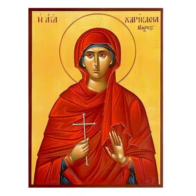 | Όνομα Προϊόντος | Εικόνα Ορθοδοξίας με περίγραμμα χρυσό σε ξύλο Φλαμουρίας με βάση Εικόνα Αγία Χαρίκλεια Χειροποίητη Ελληνορθόδοξη , Κρεμαστή πλάκα βυζαντινής τέχνης, χριστιανική τέχνη Διάσταση 45x35 cm (17,7 x 13,8 ίντσες) INTRAEK-6294670509 |