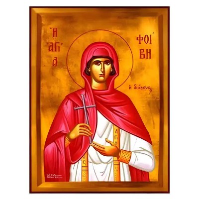 | Όνομα Προϊόντος | Εικόνα Ορθοδοξίας με περίγραμμα χρυσό σε ξύλο Φλαμουρίας με βάση Εικόνα Αγία Φοίβη η Διάκονος Χειροποίητη Ελληνορθόδοξη , Κρεμαστή πλάκα βυζαντινής τέχνης, χριστιανική τέχνη Διάσταση 45x35 cm (17,7 x 13,8 ίντσες) INTRAEK-6294670514 |