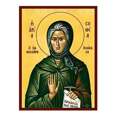 | Όνομα Προϊόντος | Εικόνα Ορθοδοξίας με περίγραμμα χρυσό σε ξύλο Φλαμουρίας με βάση Εικόνα Αγία Σοφία, η εν Κλεισούρα ασκήσασα Χειροποίητη Ελληνορθόδοξη , Κρεμαστή πλάκα βυζαντινής τέχνης, χριστιανική τέχνη Διάσταση 45x35 cm (17,7 x 13,8 ίντσες) INTRAEK-6294670526 |