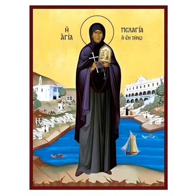 | Όνομα Προϊόντος | Εικόνα Ορθοδοξίας με περίγραμμα χρυσό σε ξύλο Φλαμουρίας με βάση Εικόνα Αγία Πελαγία Τηνία Χειροποίητη Ελληνορθόδοξη , Κρεμαστή πλάκα βυζαντινής τέχνης, χριστιανική τέχνη Διάσταση 45x35 cm (17,7 x 13,8 ίντσες) INTRAEK-6294670534 |