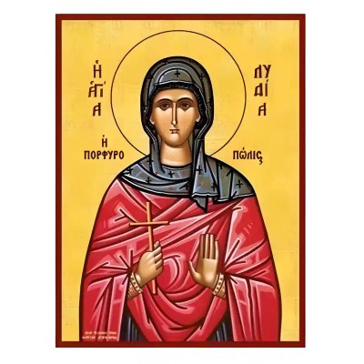 | Όνομα Προϊόντος | Εικόνα Ορθοδοξίας με περίγραμμα χρυσό σε ξύλο Φλαμουρίας με βάση Εικόνα Αγία Λυδία η Φιλιππησία, η Πορφυρόπωλις Χειροποίητη Ελληνορθόδοξη , Κρεμαστή πλάκα βυζαντινής τέχνης, χριστιανική τέχνη Διάσταση 45x35 cm (17,7 x 13,8 ίντσες) INTRAEK-6294670588 |