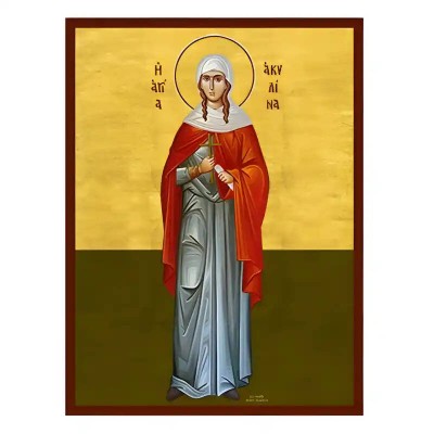 | Όνομα Προϊόντος | Εικόνα Ορθοδοξίας με περίγραμμα χρυσό σε ξύλο Φλαμουρίας με βάση Εικόνα Αγία Ακυλίνα Χειροποίητη Ελληνορθόδοξη , Κρεμαστή πλάκα βυζαντινής τέχνης, χριστιανική τέχνη Διάσταση 45x35 cm (17,7 x 13,8 ίντσες) INTRAEK-6294670697 |