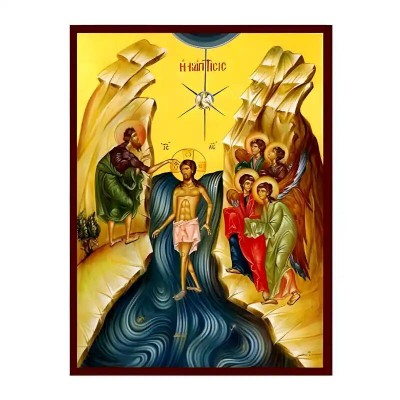 | Όνομα Προϊόντος | Εικόνα Ορθοδοξίας με περίγραμμα χρυσό σε ξύλο Φλαμουρίας με βάση Εικόνα Βάπτιση του Χριστού Χειροποίητη Ελληνορθόδοξη , Κρεμαστή πλάκα βυζαντινής τέχνης, χριστιανική τέχνη Διάσταση 45x35 cm (17,7 x 13,8 ίντσες) INTRAEK-6294670828 |