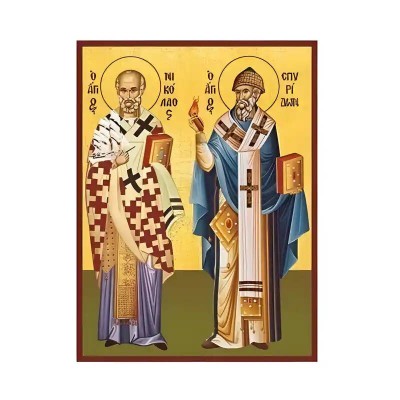 Όνομα Προϊόντος Εικόνα Ορθοδοξίας με περίγραμμα χρυσό σε ξύλο Φλαμουρίας με βάση Εικόνα Άγιοι Νικόλαος και Σπυρίδων Χειροποίητη Ελληνορθόδοξη , Κρεμαστή πλάκα βυζαντινής τέχνης, χριστιανική τέχνη Διάσταση 45x35 cm (17,7 x 13,8 ίντσες) INTRAEK-6294671120