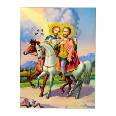 Κριτικάρετε το(τα): Εικόνα Ορθοδοξίας με περίγραμμα χρυσό σε ξύλο Φλαμουρίας με βάση Εικόνα Άγιοι Θεόδωροι, Τήρων και Στρατηλάτης Χειροποίητη Ελληνορθόδοξη , Κρεμαστή πλάκα βυζαντινής τέχνης, χριστιανική τέχνη Διάσταση 45x35 cm (17,7 x 13,8 ίντσες) INTRAEK-6294671144