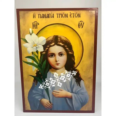 Βασικά Χαρακτηριστικά: - Σχέδιο: Κλασική βυζαντινή εικονογραφία με ζωηρό κόκκινο περίγραμμα - Υλικό: Ξύλο Μασίφ Φλαμουρία υψηλής αντοχής με προστατευτικό βερνίκι για ποιότητα που διαρκεί - Προέλευση: Χειροποίητο στην Ελλάδα - Σκοπός: Ιδανικό για γωνιές προσευχής, εκκλησίες, διακόσμηση σπιτιού ή ως δώρο με νόημα Διαθέσιμα μεγέθη: 10x7 cm (3,9 x 2,8 ίντσες) 15x11 cm (5,9 x 4,3 ίντσες) 21x15 cm (8,3 x 5,9 ίντσες) 26x20 cm (10,2 x 7,9 ίντσες) 40x30 cm (15,8 x 11,8 ίντσες) 45x35 cm (17,7 x 13,8 ίντσες) 50x40 cm (19,7 x 15,8 ίντσες)► Εικόνα της Παναγίας, ξύλινη. Χειροποίητη ξύλινη εικόνα, ειδικής επεξεργασίας σε σκληρό Φλαμουριά Ξύλο Εικόνα Ορθόδοξης τέχνης, σκαλισμένη ή τυπωμένη σε ξύλο φλαμουριάς υψηλής ποιότητας. Η φυσική απαλότητα και ομοιομορφία του ξύλου τονίζει κάθε λεπτομέρεια του εικονίσματος, αναδεικνύοντας τη βαθιά πνευματικότητα και την ιερότητα της παράδοσης. Ιδανική για οικιακό εικονοστάσι, δώρο βάπτισης, γάμου ή αφιέρωμα σε ναό. Το ξύλο έχει υποστεί ειδική επεξεργασία για α