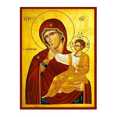 Βασικά Χαρακτηριστικά: - Σχέδιο: Κλασική βυζαντινή εικονογραφία με ζωηρό κόκκινο περίγραμμα - Υλικό: Ξύλο Μασίφ Φλαμουρία υψηλής αντοχής με προστατευτικό βερνίκι για ποιότητα που διαρκεί - Προέλευση: Χειροποίητο στην Ελλάδα - Σκοπός: Ιδανικό για γωνιές προσευχής, εκκλησίες, διακόσμηση σπιτιού ή ως δώρο με νόημα Διαθέσιμα μεγέθη: 10x7 cm (3,9 x 2,8 ίντσες) 15x11 cm (5,9 x 4,3 ίντσες) 21x15 cm (8,3 x 5,9 ίντσες) 26x20 cm (10,2 x 7,9 ίντσες) 40x30 cm (15,8 x 11,8 ίντσες) 45x35 cm (17,7 x 13,8 ίντσες) 50x40 cm (19,7 x 15,8 ίντσες)► Εικόνα της Παναγίας Παραμυθίας, ξύλινη. Χειροποίητη ξύλινη εικόνα, ειδικής επεξεργασίας σε σκληρό Φλαμουριά Ξύλο Εικόνα Ορθόδοξης τέχνης, σκαλισμένη ή τυπωμένη σε ξύλο φλαμουριάς υψηλής ποιότητας. Η φυσική απαλότητα και ομοιομορφία του ξύλου τονίζει κάθε λεπτομέρεια του εικονίσματος, αναδεικνύοντας τη βαθιά πνευματικότητα και την ιερότητα της παράδοσης. Ιδανική για οικιακό εικονοστάσι, δώρο βάπτισης, γάμου ή αφιέρωμα σε ναό. Το ξύλο έχει υποστεί ειδική επεξε