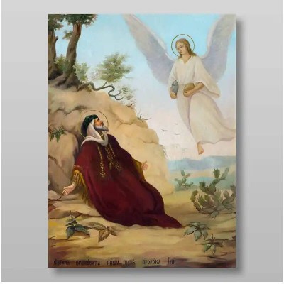 | Όνομα Προϊόντος | Εικόνα Ορθοδοξίας με περίγραμμα χρυσό σε ξύλο Φλαμουρίας με βάση Ένας άγγελος ταΐζει τον προφήτη Ηλία Χειροποίητη Ελληνορθόδοξη , Κρεμαστή πλάκα βυζαντινής τέχνης, χριστιανική τέχνη Διάσταση 50x40 cm (19,7 x 15,8 ίντσες) INTRAEK-65432890 |