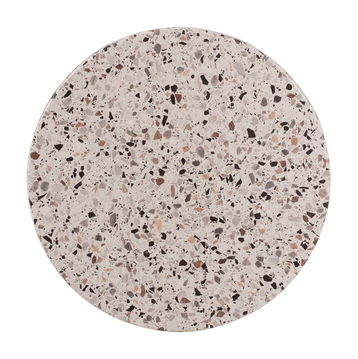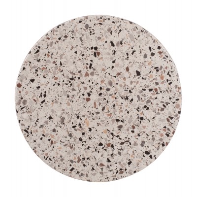 Επαγγελματική στρογγυλή επιφάνεια τραπεζιού σε χρώμα TERRAZZO (σαν μωσαϊκό), η οποία είναι κατάλληλη για επαφή με τρόφιμα και γενικά το υλικό είναι φιλικό προς το περιβάλλον. Μπορεί να χρησιμοποιηθεί σε καφετέριες, εστιατόρια, και τουριστικά καταλύματα, είτε σε εσωτερικούς, είτε σε εξωτερικούς χώρους.