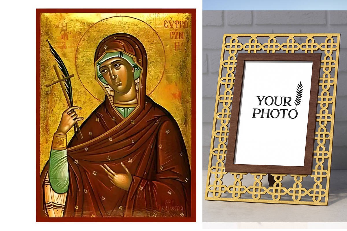 | Όνομα Προϊόντος | Εικόνα Ορθοδοξίας Πολυτελείας με σχεδιο Σταυρούς μαζι με Βάση σε 8 χρώματα με περίγραμμα χρυσό σε ξύλο Plywood (Πλακάζ) με βάση Εικόνα Αγία Ευφροσύνη Χειροποίητη Ελληνορθόδοξη , Κρεμαστή πλάκα βυζαντινής τέχνης, χριστιανική τέχνη Διάσταση 10x7 cm ( |
