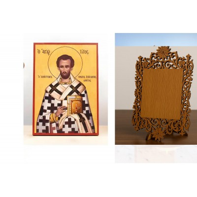| Όνομα Προϊόντος | Εικόνα Ορθοδοξίας Δαντέλα μαζι με Βάση σε 8 χρώματα με περίγραμμα χρυσό σε ξύλο Plywood (Πλακάζ) με βάση Άγιος Απόστολος Τίτος πρώτος Επίσκοπος Κρήτης, Ξύλινη Χειροποίητη Εικόνα Ελληνικής Κορυφαίας Βυζαντινής Στυλ Κρεμαστή σε ξύλινη πλάκα Θρησκευτικό |