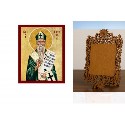 | Όνομα Προϊόντος | Εικόνα Ορθοδοξίας Δαντέλα μαζι με Βάση σε 8 χρώματα με περίγραμμα χρυσό σε ξύλο Plywood (Πλακάζ) με βάση Εικόνα Αγίου Πατρικίου της Ιρλανδίας, Χειροποίητη Χριστιανική Εικόνα του Αγίου Πατρικίου, Κρεμαστή πλάκα Βυζαντινής Τέχνης, Χριστιανική Θρησκευτι |