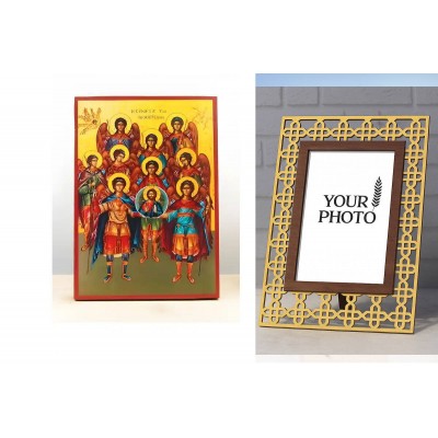 Εικόνα Ορθοδοξίας Πολυτελείας με σχεδιο Σταυρούς μαζι με Βάση σε 8 χρώματα με περίγραμμα χρυσό σε ξύλο Plywood (Πλακάζ) με βάση Σύναξη Αρχαγγέλων με τον Ιησού Χριστό, Ξύλινη Χειροποίητη Εικόνα Ελληνικού Βυζαντινού Στυλ Κρεμαστή σε Ξύλινη Πλάκα Θρησκευτικό Θέμα Χειροποίητη Ελληνορθόδοξη εικόνα του Ιησού Χριστού, Κρεμαστή πλάκα βυζαντινής τέχνης, χριστιανική τέχνη Διάσταση 10x7 cm (3,9 x 2,8 ίντσες) INTRAEK3kadro3211-10806