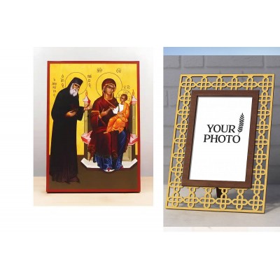 Κριτικάρετε το(τα): Εικόνα Ορθοδοξίας Πολυτελείας με σχεδιο Σταυρούς μαζι με Βάση σε 8 χρώματα με περίγραμμα χρυσό σε ξύλο Plywood (Πλακάζ) με βάση Άγιος Παΐσιος με την Παναγία και τον Ιησού Χριστό, Ξύλινη Χειροποίητη Εικόνα Ελληνικού Βυζαντινού Στυλ Κρεμασμένη σε ξύλ