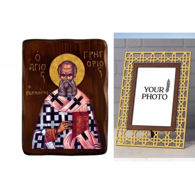 Όνομα Προϊόντος Εικόνα Ορθοδοξίας Πολυτελείας με σχεδιο Σταυρούς μαζι με Βάση σε 8 χρώματα με περίγραμμα χρυσό σε ξύλο Plywood (Πλακάζ) με βάση Εικόνα Αγίου Γρηγορίου, Χειροποίητη ελληνορθόδοξη εικόνα του Αγίου Γρηγορίου, επιτοίχια πλάκα βυζαντινής τέχνης, θρησκευ