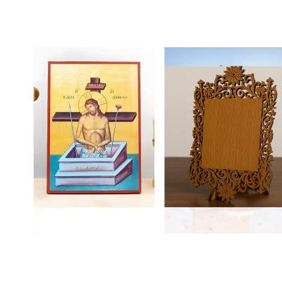 | Όνομα Προϊόντος | Εικόνα Ορθοδοξίας Δαντέλα μαζι με Βάση σε 8 χρώματα με περίγραμμα χρυσό σε ξύλο Plywood (Πλακάζ) με βάση Jesus Christ Man of Sorrows "Extreme Humility", Ξύλινη Χειροποίητη Εικόνα Ελληνικού Premium Βυζαντινού Στυλ τοίχου Κρεμασμένη σε ξύλινη πλάκα Θρη |