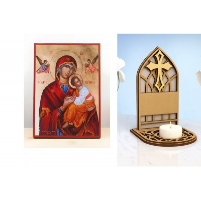 | Όνομα Προϊόντος | Εικόνα Ορθοδοξίας Καντηλάκι σε 8 χρώματα με περίγραμμα χρυσό σε ξύλο Plywood (Πλακάζ) με βάση Παναγία αμόλυντη «Αμόλυντος» με τον Ιησού, Ξύλινη Χειροποίητη Εικόνα Ελληνική Premium Βυζαντινού Στυλ τοίχου Κρεμασμένη σε Ξύλινη Πλάκα Θρησκευτικό Χειροποίη |