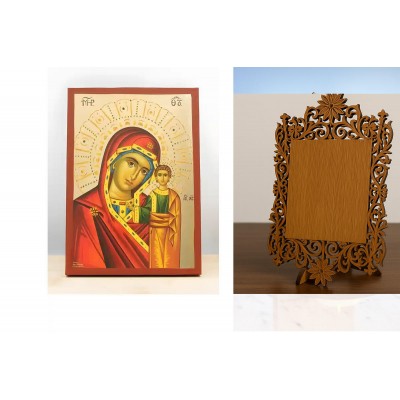| Όνομα Προϊόντος | Εικόνα Ορθοδοξίας Δαντέλα μαζι με Βάση σε 8 χρώματα με περίγραμμα χρυσό σε ξύλο Plywood (Πλακάζ) με βάση Παναγία του Καζάν με τον Ιησού, Ξύλινη Χειροποίητη Εικόνα με Φύλλο Χρυσού Ελληνικού Premium Βυζαντινού Στυλ Κρεμαστό στον τοίχο Θρησκευτικό θέμα |