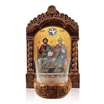 | Όνομα Προϊόντος | Εικόνα Ορθοδοξίας με περίγραμμα χρυσό σε ξύλο Φλαμουρίας με βάση Λυχνία Αγρυπνίας της Αγίας Τριάδας, Πατέρα Ιησού Χριστού & Εικόνα Επιτραπέζιου Πνεύματος, Χειροποίητο Κεραμικό Φωτιστικό Αγρυπνίας με Γυάλινο Κύπελλο Διάσταση 10x7 cm (3,9 x 2,8 ίντσες |