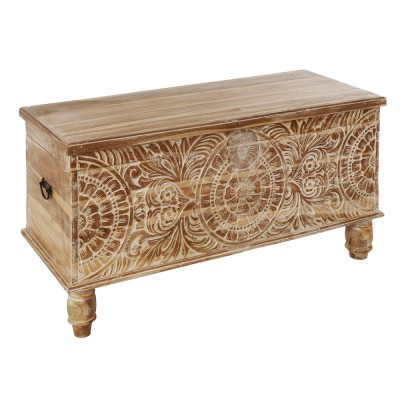 Artekko Magnus Ξύλινο Μασίφ Σκαλιστό Μπαούλο σε Φυσική Απόχρωση Ξύλου (120x50x62)cm Artekko 667-4020