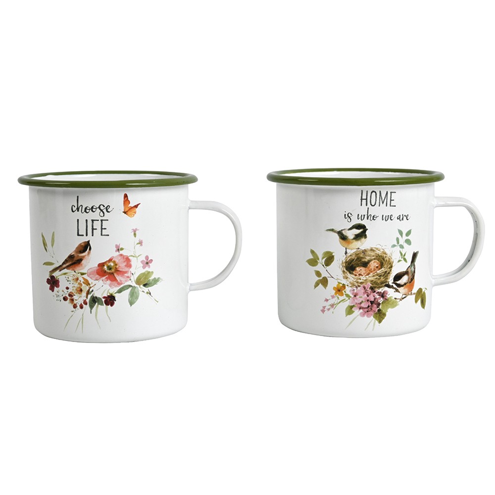 Όνομα Προϊόντος Artekko Mug Λευκές Μεταλλικές Κούπες με Πράσινα Σχέδια (14x11x10)cm 2pcs Artekko 742-2507