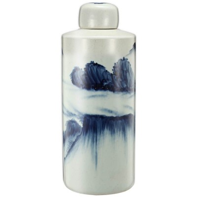 Artekko Udru Δοχείο Διακοσμητικό με Καπάκι Άσπρο/Μπλέ (18x18x46)cm Artekko AV0607