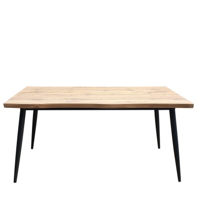 Ένα τραπέζι που συνδυάζει το ξύλο με το μέταλλο σε ένα μοντέρνο σύνολο για την τραπεζαρία σας. Η επιφάνεια του είναι από μοριοσανίδα υψηλής αντοχής που καταλήγει σε τέσσερα περίτεχνα μεταλλικά πόδια. Μια μοντέρνα και ιδιαίτερη επιλογή που θα απογειώσει τον χώρο σας με το μοναδικό στυλ του.