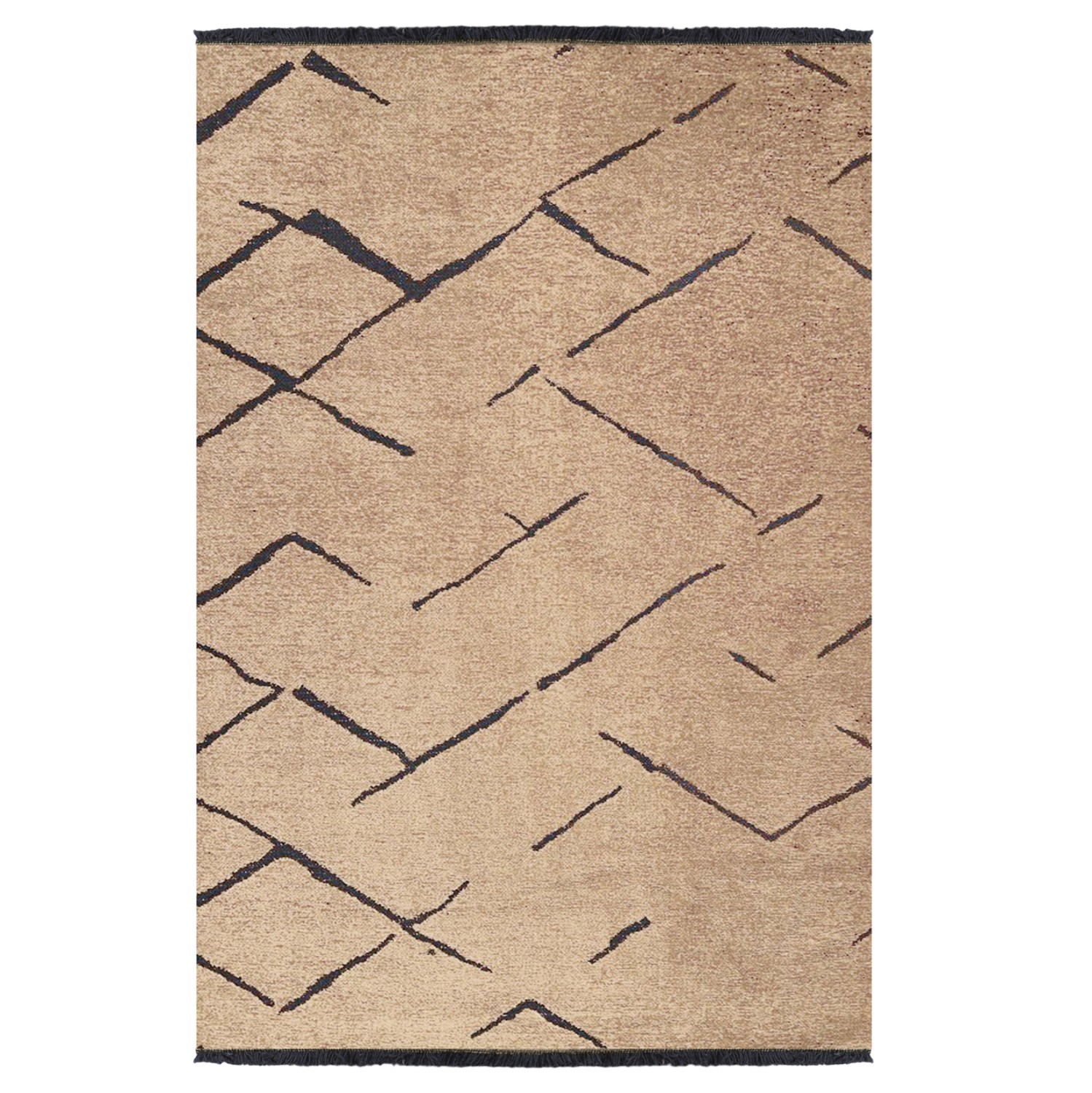 Αυτό το χαλί είναι ΑΝΟΙΧΤΟ ΚΑΦΕ με μαύρες λεπτομέρειες, και θα δώσει μια μοντέρνα αίσθηση στο σαλόνι σας.