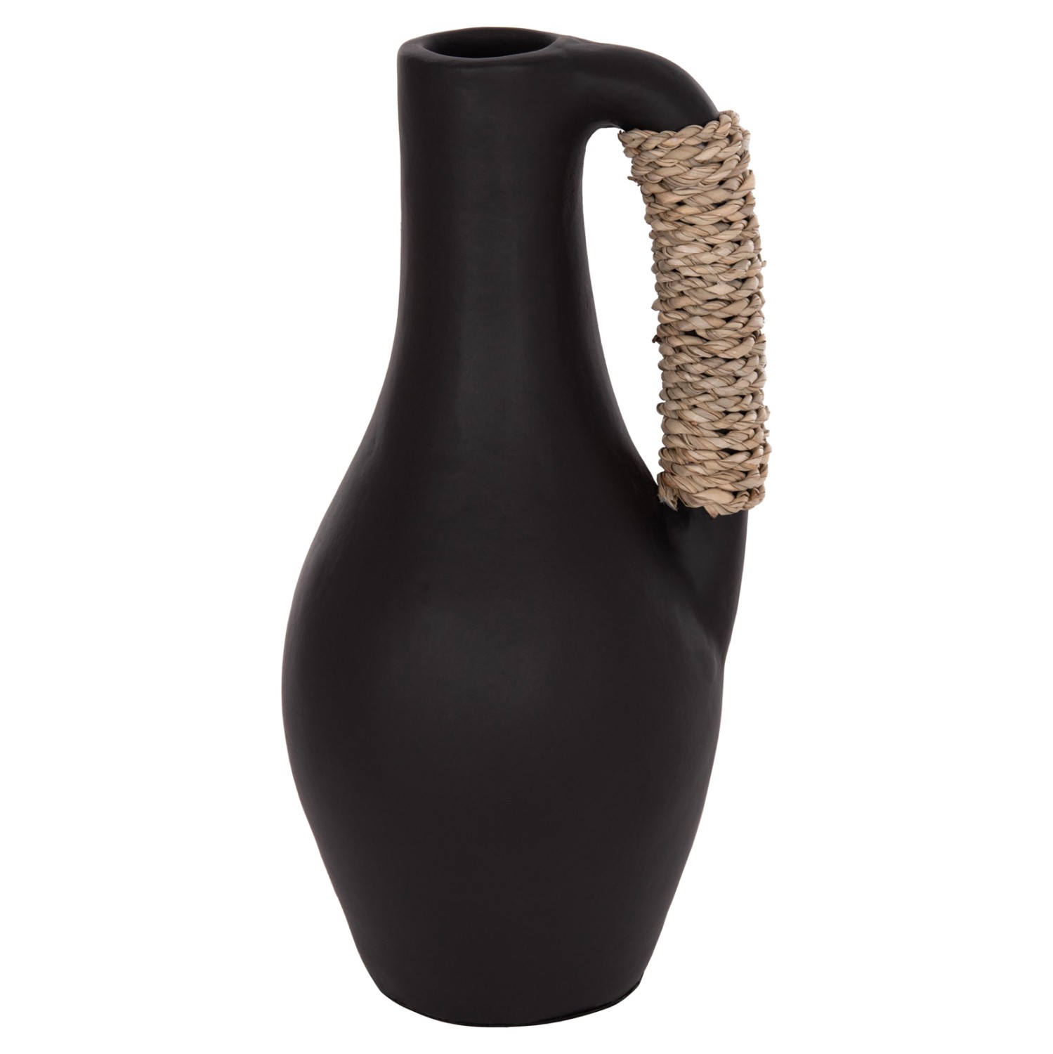 Το επιτραπέζιο χειροποίητο διακοσμητικό βάζο CAMMER είναι κατασκευασμένο εξολοκλήρου από τερακότα σε ΜΑΥΡΟ χρώμα ενώ διαθέτει διακοσμητική πλέξη από seagrass στο χερούλι που διαθέτει. Ιδανικό για πληθώρα χώρων, τόσο για το σπίτι, όσο και για επαγγελματικούς χώρους.